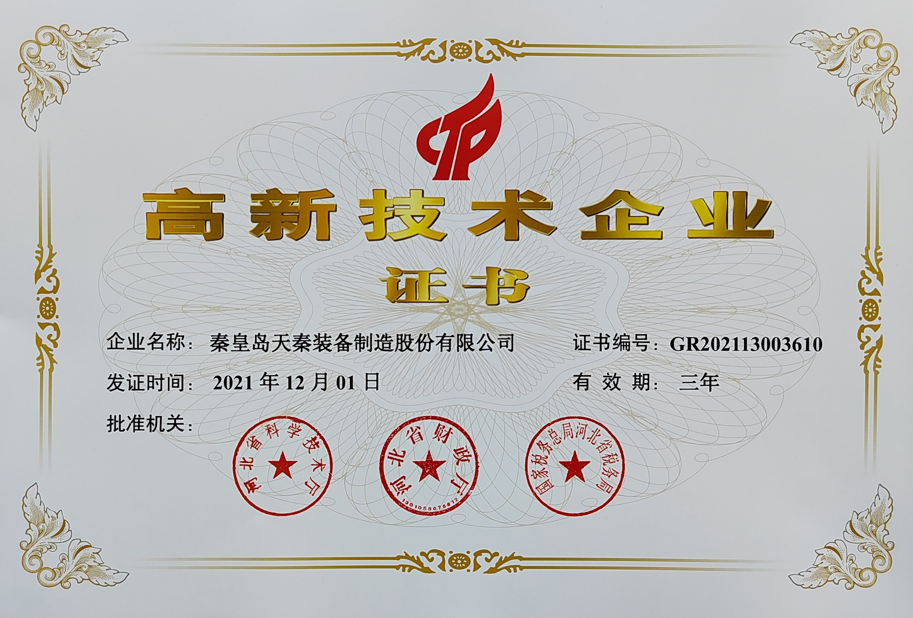 - 秦皇島天秦裝備制造股份有限公司創(chuàng)立于1996年,總部位于河北省秦皇島市經(jīng)濟(jì)技術(shù)開發(fā)區(qū),秦皇島廠區(qū)占地4萬平方米,擁有3萬平方米的標(biāo)準(zhǔn)廠房、辦公樓和工程技術(shù)研發(fā)中心;分部天津廠區(qū)位于天津市靜海經(jīng)濟(jì)開發(fā)區(qū),占地2萬平方米,擁有1.6萬平方米標(biāo)準(zhǔn)廠房。 公司通過了GB/T 19001質(zhì)量管理體系及GB/T 24001環(huán)境管理體系認(rèn)證,是國(guó)家高新技術(shù)企業(yè)、河北省軍民融合產(chǎn)學(xué)研用創(chuàng)建基地,建有省級(jí)院士工作站。